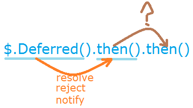 整体架构上,可以清晰的看出,promise.then方法最后通过jQuery.Deferred返回了一个新的受限制的deferred对象,即deferred.promise,正因为这样,所以执行完then方法后,我们是不能通过deferred.pomise手动触发resolve、reject或notify的。