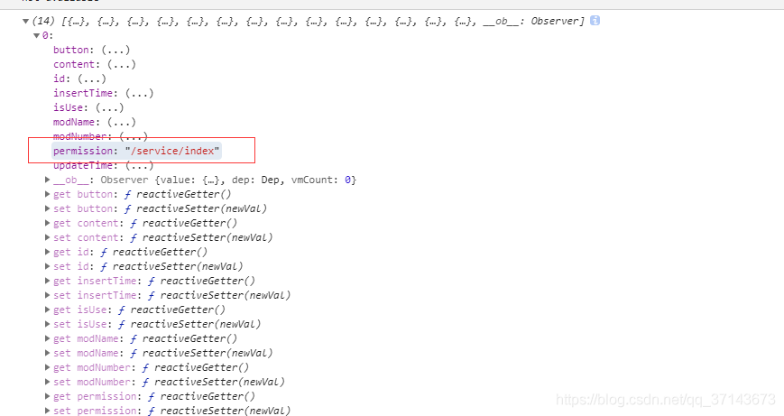 我们要用的只有这个 permission 字段,说简单点,你既可以和我一样直接拿到目录对象的所有数据,也可以单单取这个 permission 字段组成的数组,看自己习惯,具体后面判断逻辑在下面目录渲染的部分,单单数组的逻辑会更加简单点