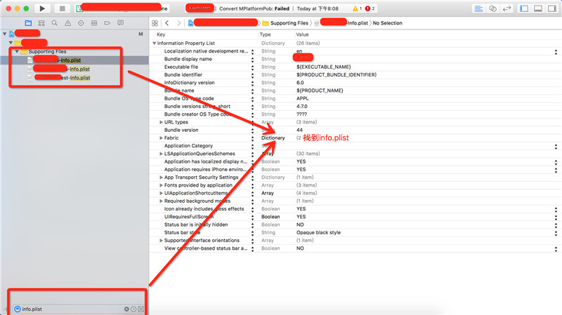也可以找到info.plist文件,然后使用SourceCode方式打开: