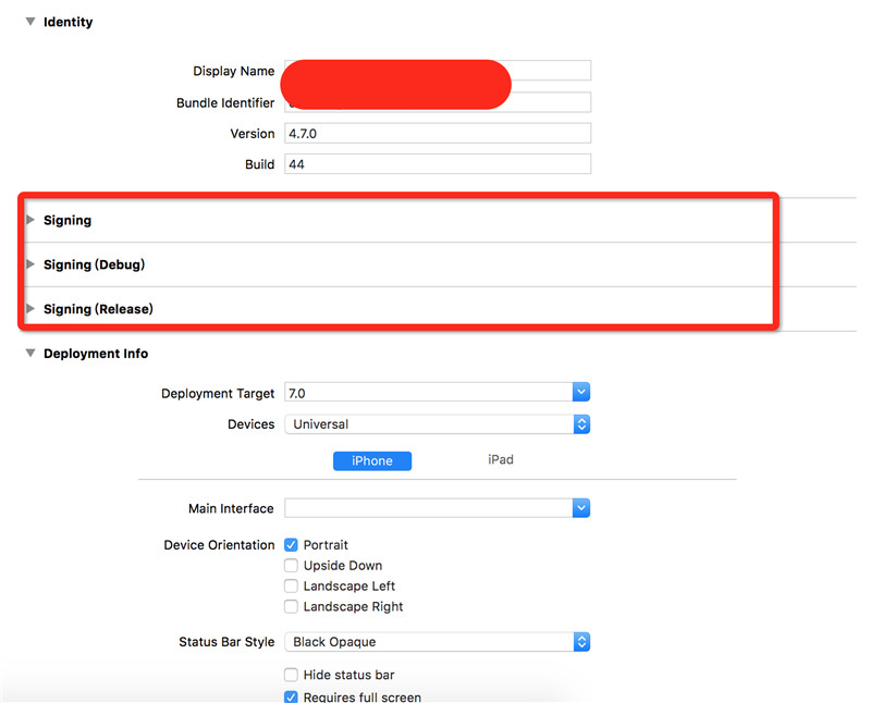 在Xcode8工程配置的general选项卡中,使用更详细signing选项替换了原有的team选项。