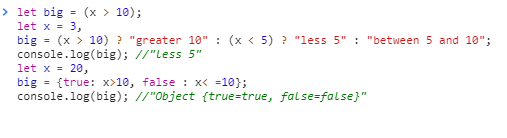 let big = x > 10 ? true : false;