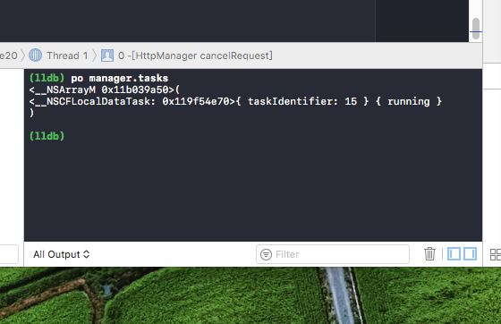 manager里面的tasks装的就是正在执行的网络请求。执行cancel后,tasks就会清空,网络请求会进入失败的状态,然后响应failure block,得到一个error的信息,表示请求已经成功取消了。