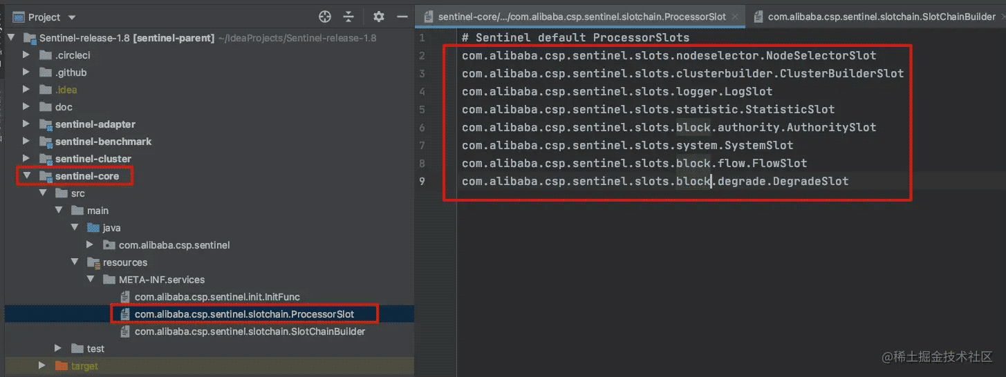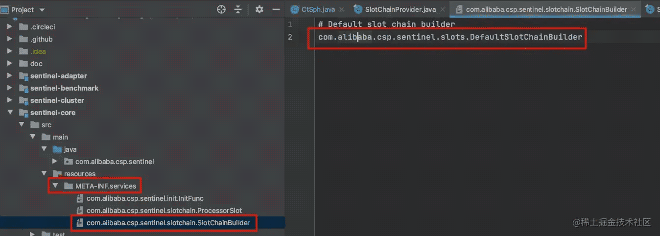 通过SPI机制,去项目中META-INF.service中获取,在sentinel-core项目中: