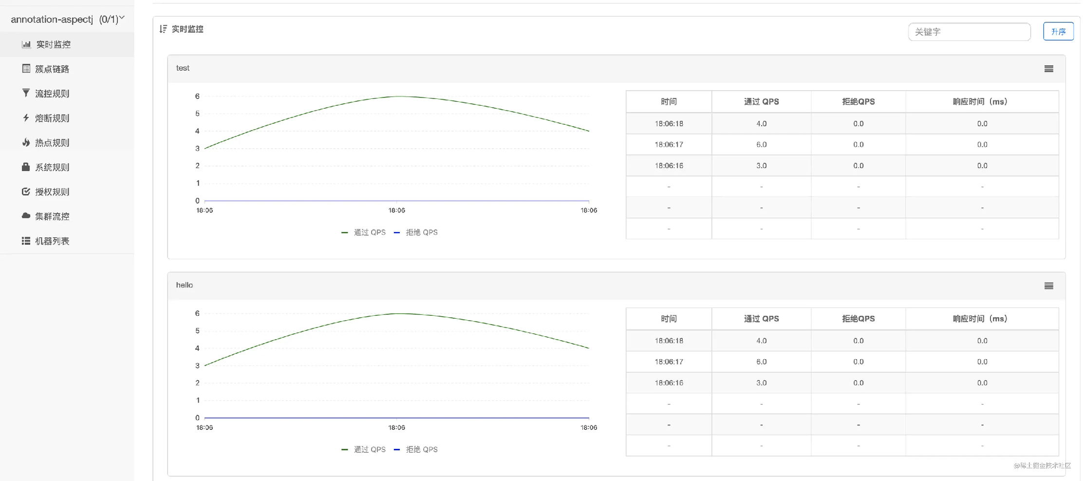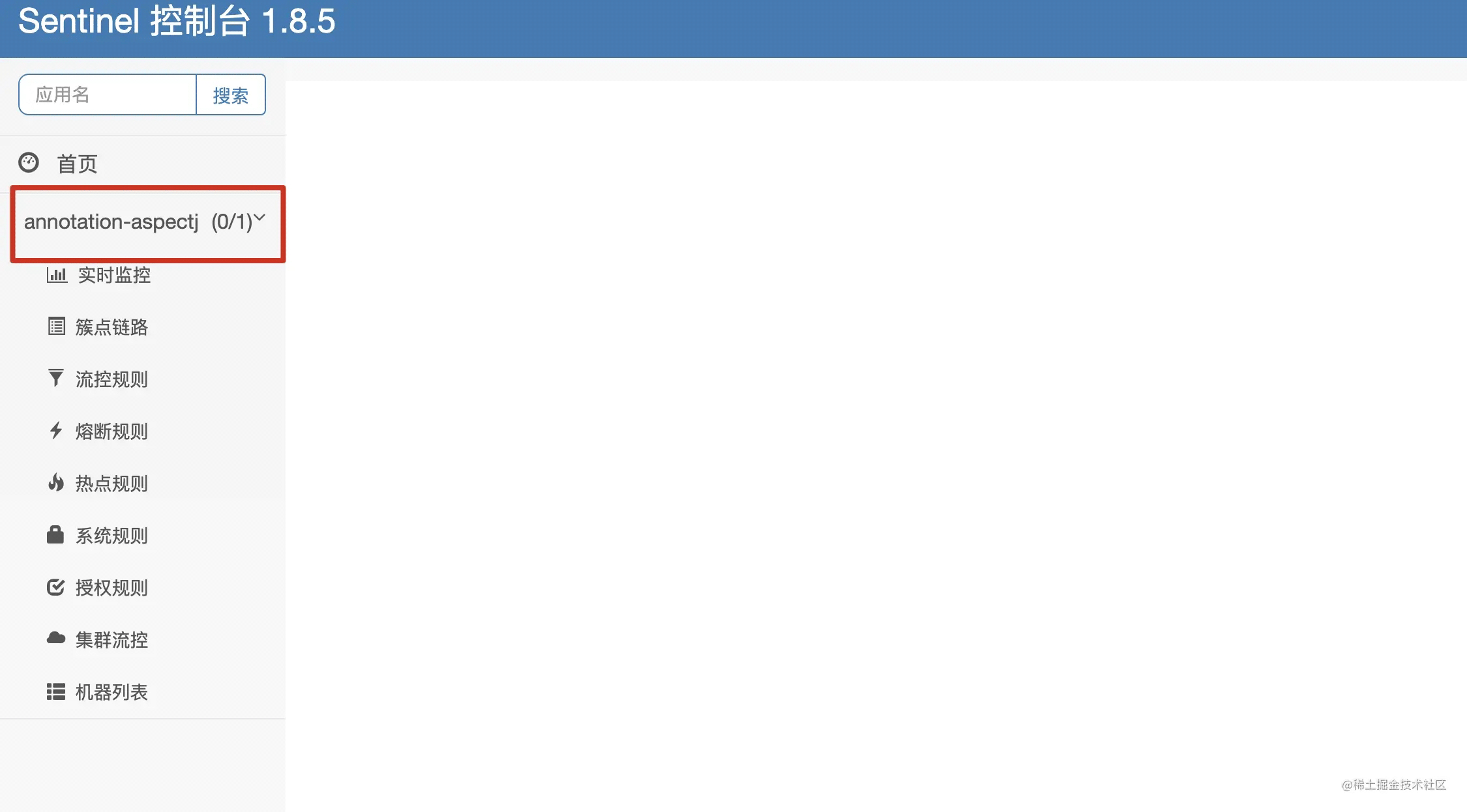 打开http://localhost:8081/#/dashboard 地址,可以看到应用已经注册到sentinel管理后台: