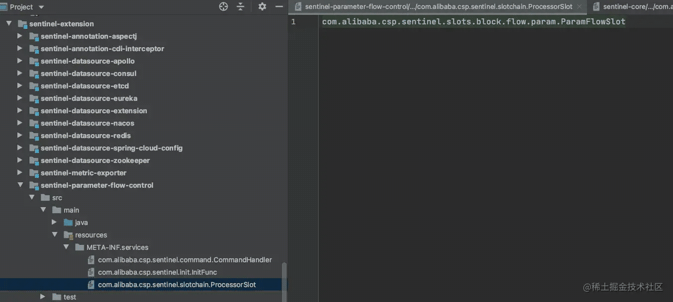 还有一个ParamFlowSlot,在sentinel-extension/sentinel-parameter-flow-control下: