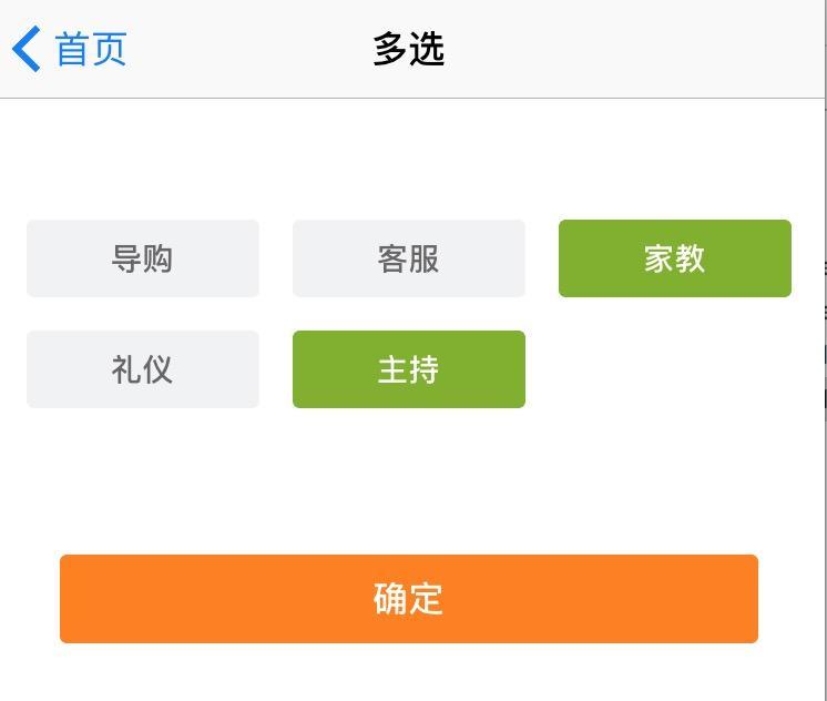 array = @[@"导购", @"客服", @"家教", @"礼仪", @"主持"];
