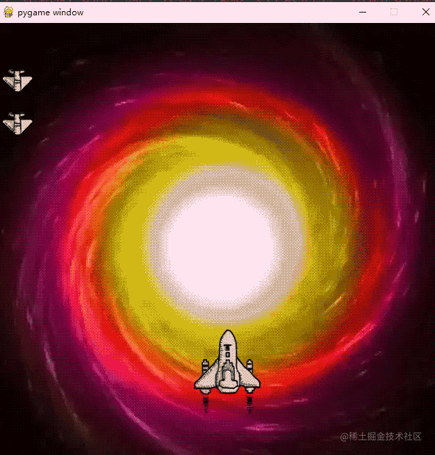 代码运行结果如下图所示:可以看出有两j架敌机向下飞行,实际结果为动画效果。