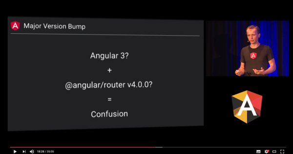 就在2017年的3月,Angular已经发布了4.0的版本(兼容2.x版本),关于为什么是4.0,官方的解释是因为Router这个主要核心组件的版本已经是4.0.0,如果Angular还用3.0会引起混淆,如下图: