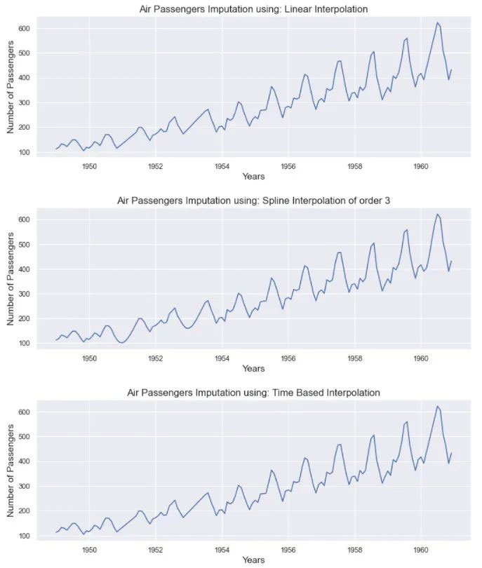passenger[‘Time'] = passenger[‘Passengers'].interpolate(method='time')