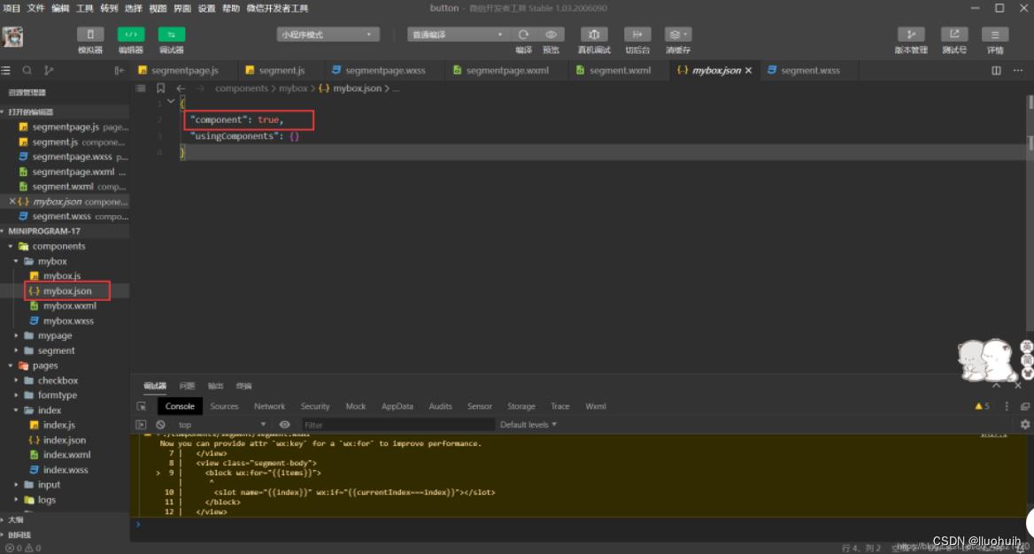 3、在指定组件的文件夹中右键->新建Component创建组件。这样创建的目的是在json文件中添加"component": true,将其声明为一个组件。