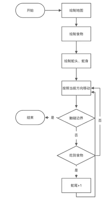 蛇头、蛇身:蛇头和蛇身分离,当吃到食物后,蛇身尾部加一