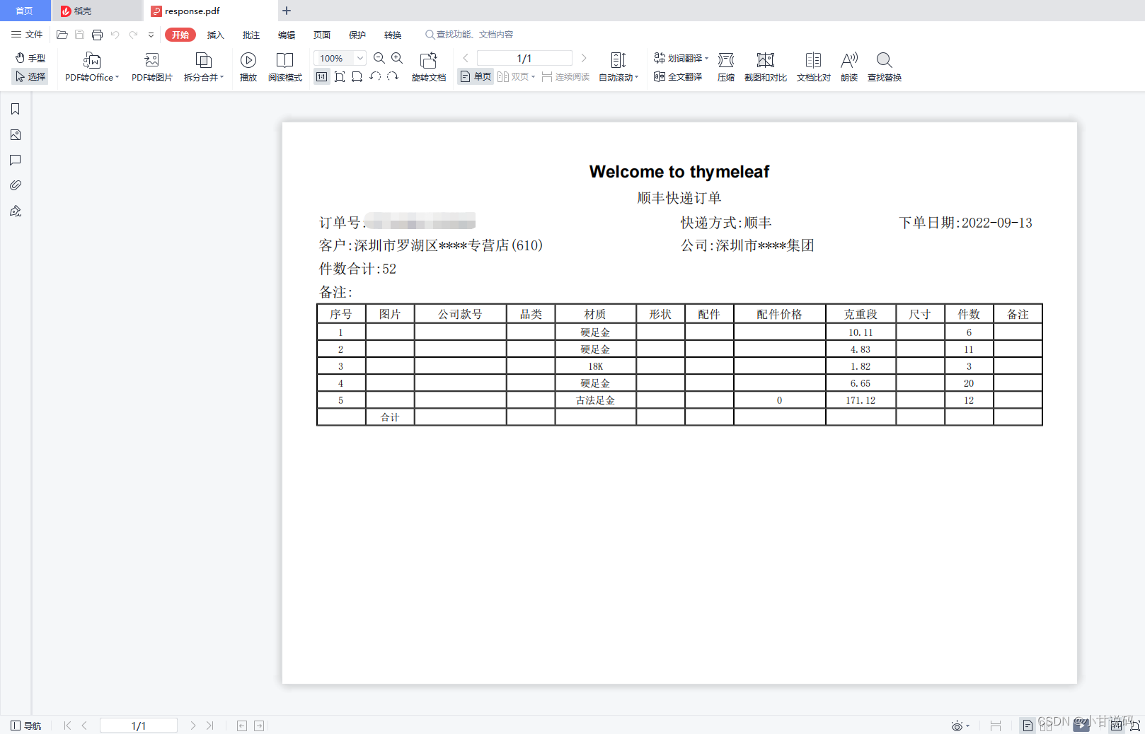 温馨提示:本博客使用Thymeleaf模板引擎实现PDF打印仅供参考: