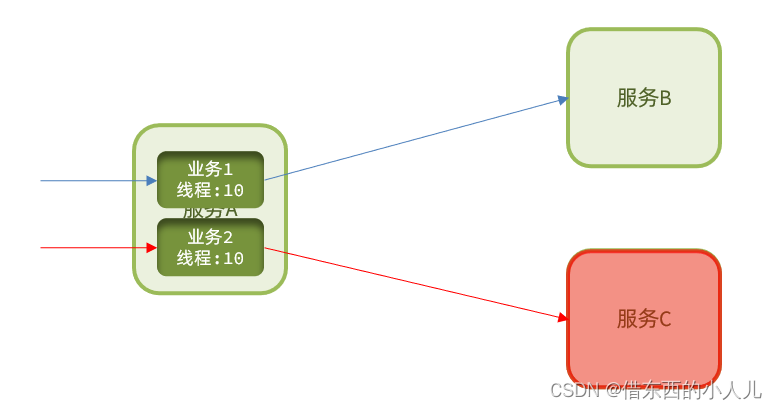 线程隔离:调用者在调用服务提供者时,给每个调用的请求分配独立线程池,出现故障时,最多消耗这个线程池内资源,避免把调用者的所有资源耗尽。