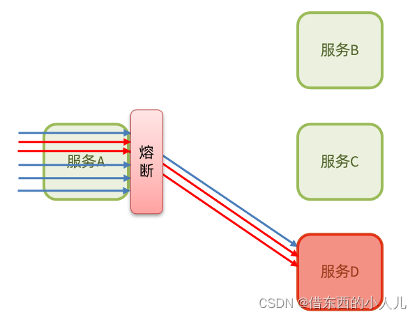 熔断降级:是在调用方这边加入断路器,统计对服务提供者的调用,如果调用的失败比例过高,则熔断该业务,不允许访问该服务的提供者了。