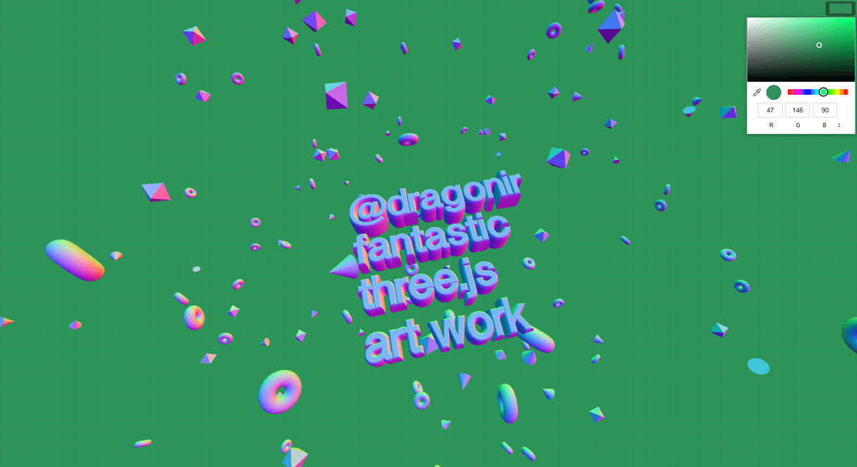 textMesh.geometry = new TextGeometry('@dragonir\nfantastic\nthree.js\nart work', {
