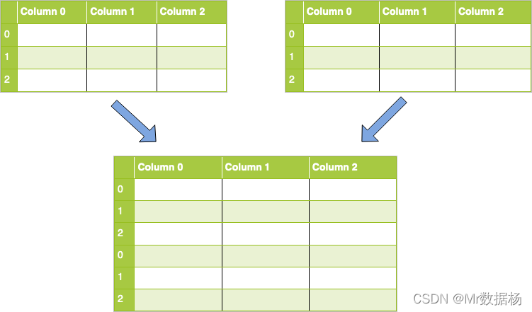 concat 操作起来就比较灵活,可以进行横向的拼接操作,也可以进行纵向的拼接操作。