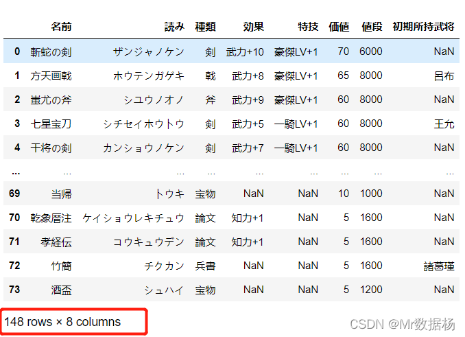 我们使用三国的宝物数据来观察,数据 74 行。