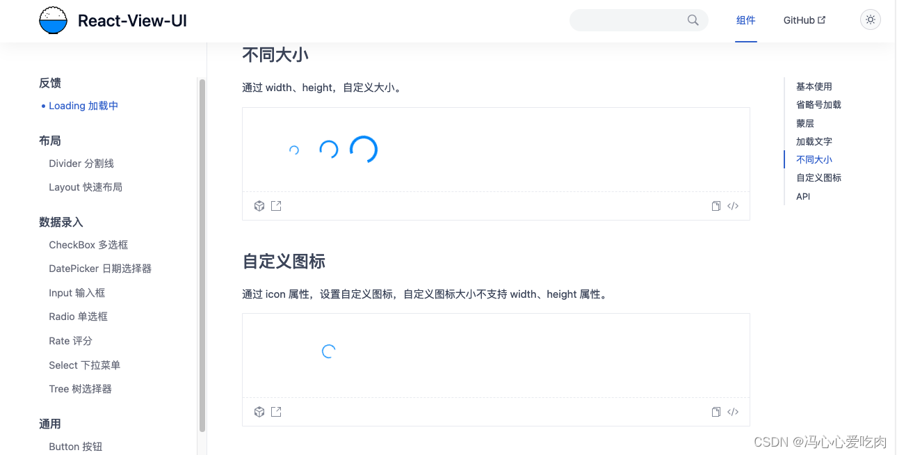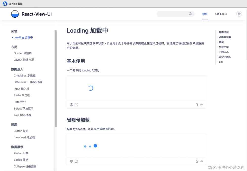 Loading组件是日常开发用的很多的组件,这次封装主要包含两种状态的Loading,旋转、省略号,话不多说先看一下组件的文档页面吧: