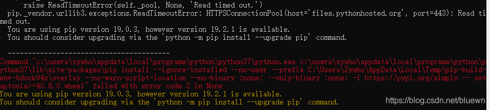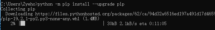然而按照提示输入python -m pip install --upgrade pip打算升级: