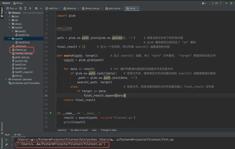 def search(path, target): # 定义 search() 函数,传入 "path" 文件路径, "target" 要查找的目标文件