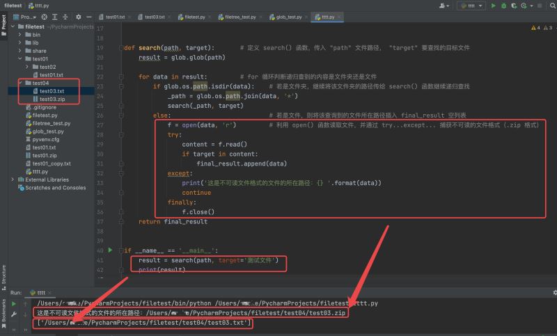 path = glob.os.path.join(glob.os.getcwd(), '*test04') # 因为下文捕获不可读文件格式太多,所以这里直接指定了 "test04" 路径