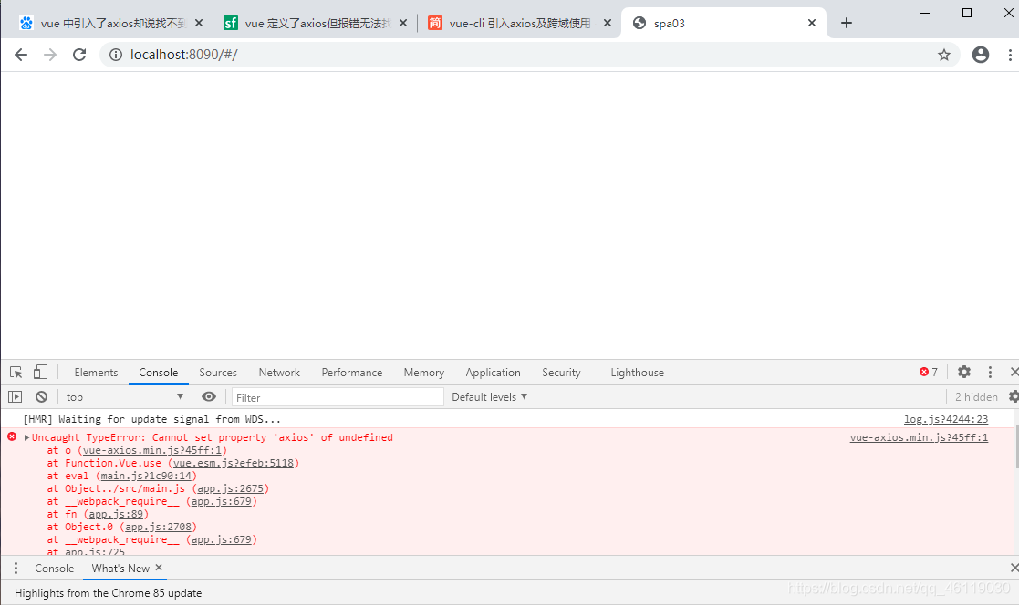 vue开发使用axios的时候报错