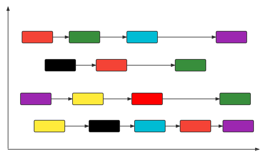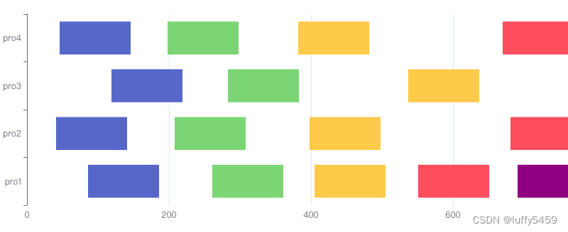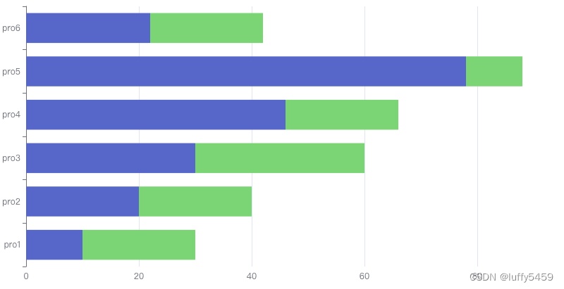 从上面的示例,我们可以这样来实现, 把两组数据看作一组,每一组第一个数据集展示隐藏,这里如果是项目进度图,我们可以把开始时间、结束时间作为一组,结束时间与开始时间中间这一段时间就是持续时间,这个时间在这里是一个增量,就是第二个数据集是展示在第一个数据集的基础上,它不能再直接使用结束时间,而是使用间隔时间。