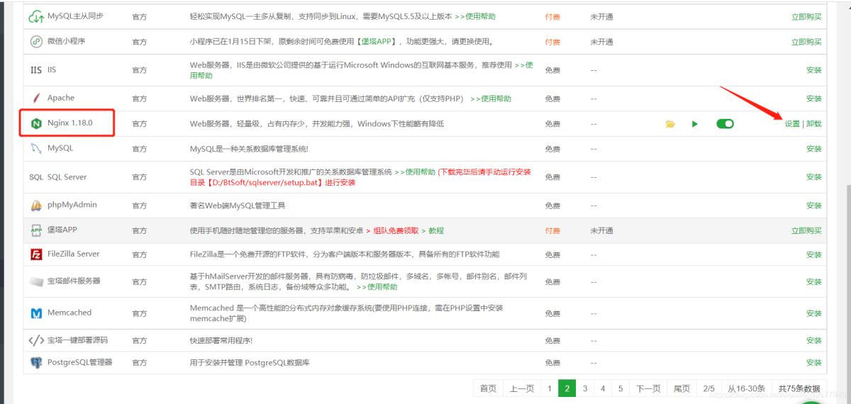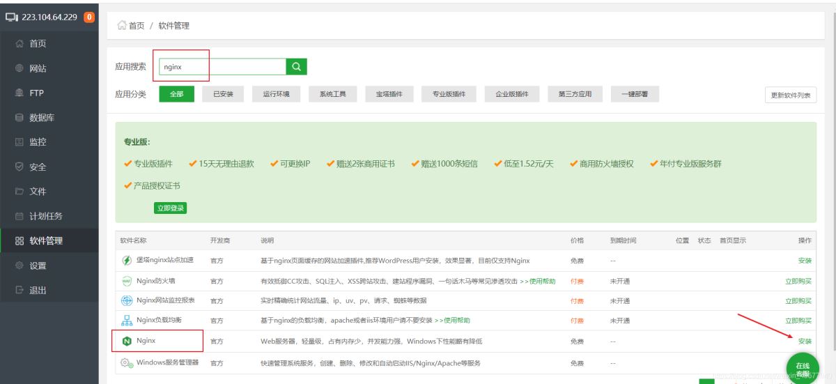 3 , 顶部的应用搜索 nginx , 找到之后点右边的安装
