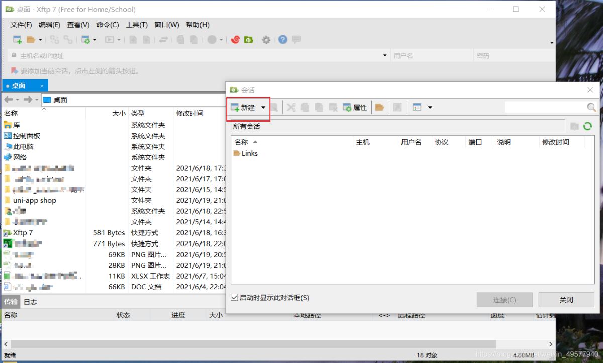 4 .然后会看到右侧出现了新建会话的窗口 , 表示连接到服务器了,