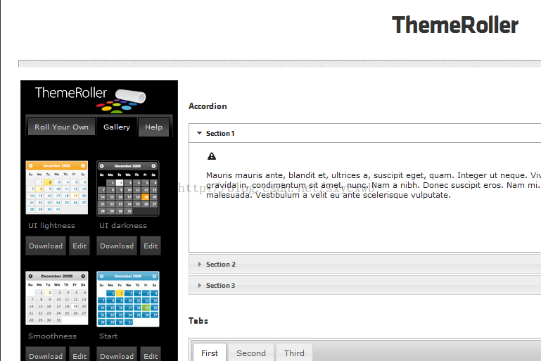 -->首先在jqueryUI官网上根据你的需要下载适合你系统主题的样式,jqueryUI主题:下载地址;
