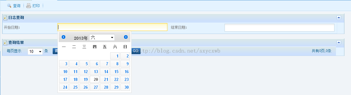 问题:运行之后,点击"查询",页面局部刷新,发现日历选择器不出来了