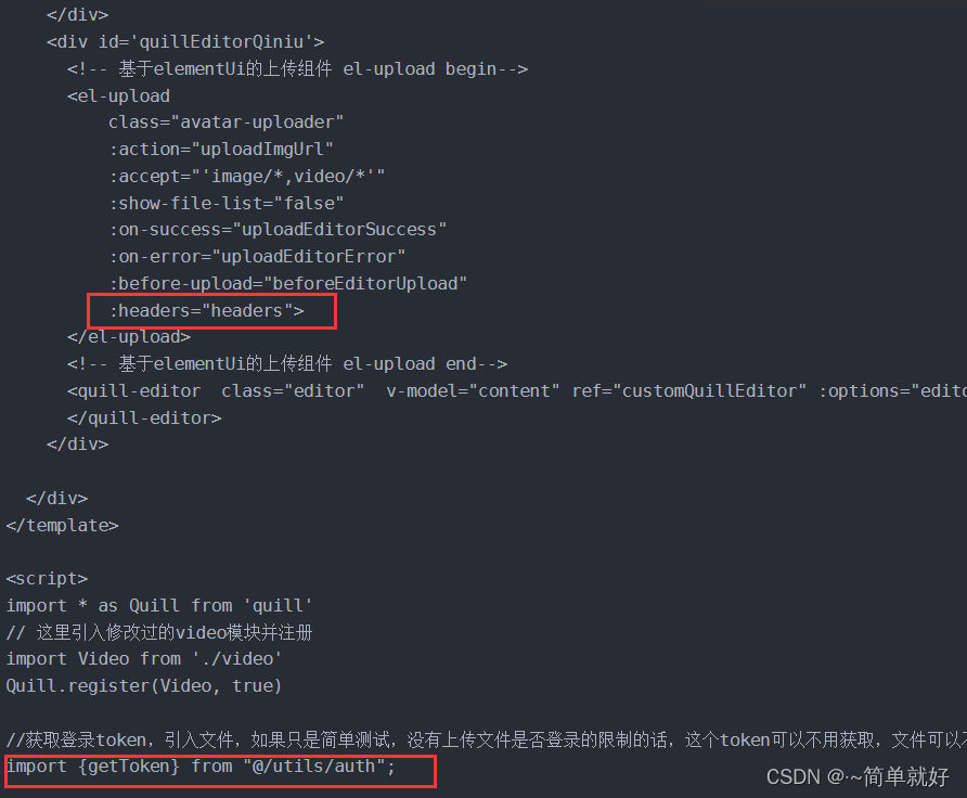 import * as Quill from 'quill' // 这里引入修改过的video模块并注册 import Video from './video' Quill.register(Video, true)