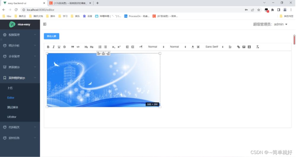 此时就quill-editor富文本编辑器就能使用了,除了基本功能之外也能够上传图片