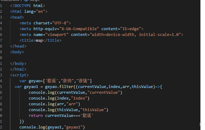 var geyao1 = geyao.filter((currentValue,index,arr,thisValue)=>{