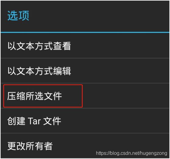 找到源文件后,长按左键 -> 点击右上角三个小点,打开菜单,选择‘压缩所选文件'->完成后,点击查看->长按,还是右上角,将压缩包从模拟器发送出来到电脑上,方式多种,随意。下图是以QQ方式发送。