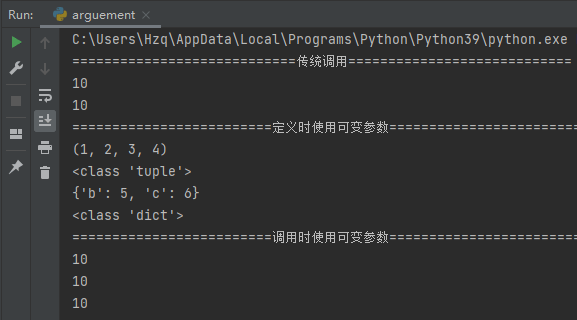 print('调用时使用可变参数'.center(60, '='))