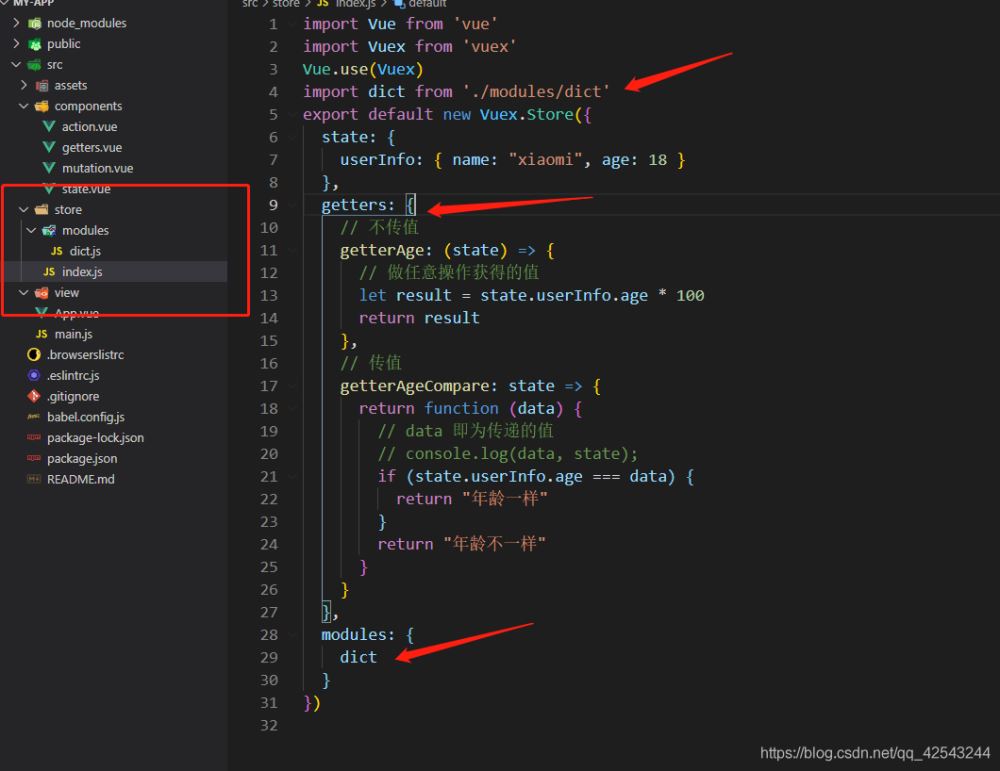 紧接上篇,本片主要讲讲vuex 中 getters的使用,示例中使用了vuex的modules,getters的使用与vue组件中computed中使用类似,再学习的过程中,注意举一反三