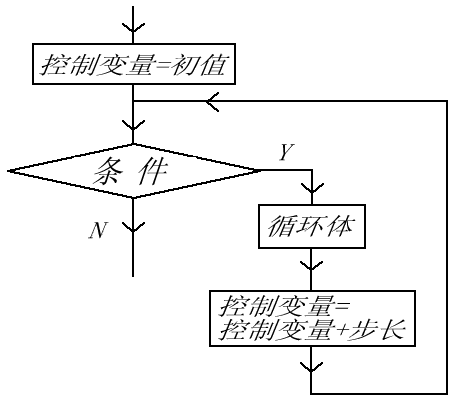 for (<初始表达式>;<条件表达式>;<变动量表达式>){