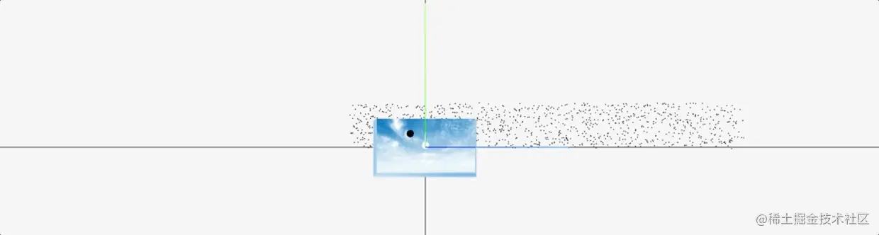 星星的运动效果,实际就是沿着z轴从远处不断朝着相机位置移动,直到移出相机的位置时回到起点,不断重复这个操作。我们使用上帝视角,从x轴的左侧看去,效果如下: