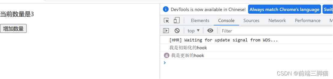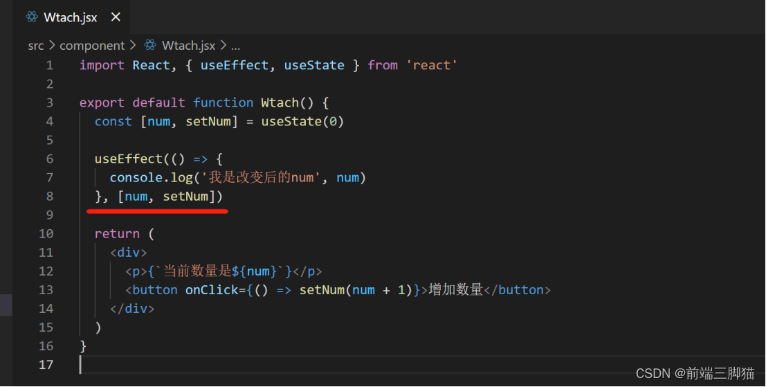 2、上面看完了useEffect 实现生命周期的功能,下面就来看下它是怎么实现类似watch属性的。
