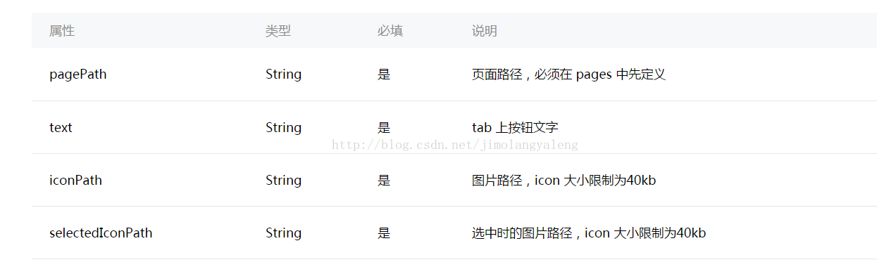 tabBar中每个item的属性如下: