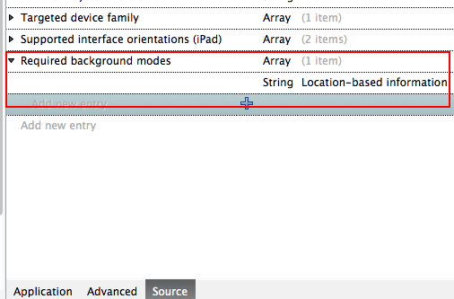 <key>UIBackgroundModes</key> <array> <string>location</string> </array>