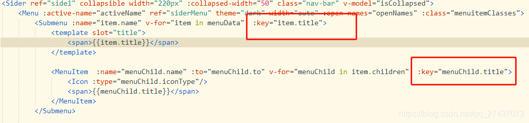 在前端开发中如下图菜单框架(左侧菜单内容由顶部菜单点击后动态更新data内 menu:[] )v-for循环menu显示左侧菜单
