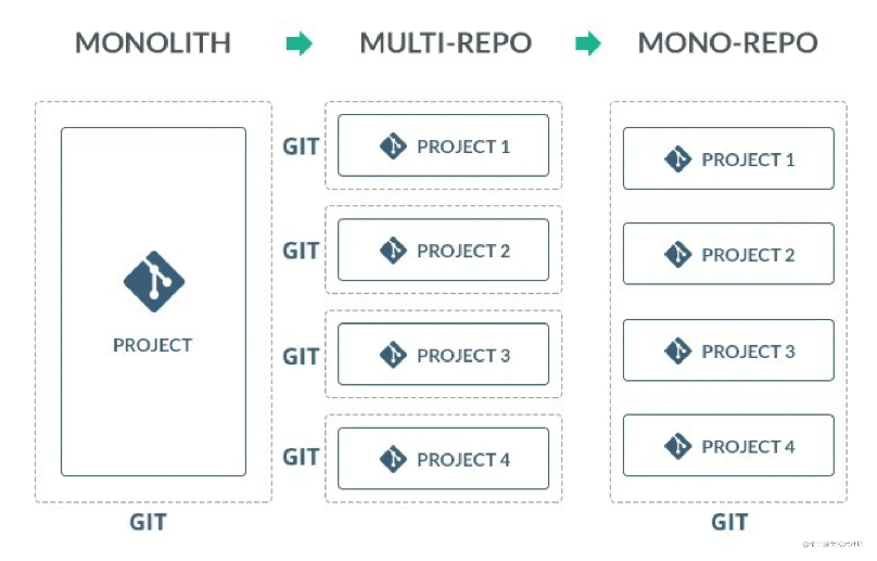简单的说当我们把所有的代码全都放在一个仓库内,然后所有同学都在这个仓库上进行开发,这种模式就可以称之为Monorepo。
