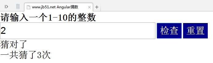 <input type="text" ng-model="guess"><button ng-click="check()">检查</button><button ng-click="reset()">重置</button>