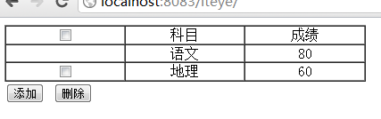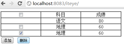 4、对选中行进行删除,现点击“删除”按钮就会把选中的行删除掉,效果如下截图: