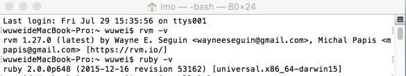 ruby -v //也可以查看ruby版本 //列出ruby可安装的版本信息 rvm list known rvm install 2.2.2 //安装一个ruby版本