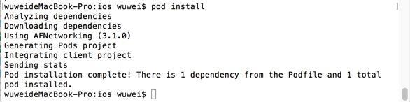 这时候,你就可以利用CocoPods下载AFNetworking类库了。还是在终端中的当前项目目录下,运行以下命令:
