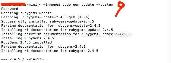 $ sudo gem update --system $ gem sources --remove https://rubygems.org/ //等有反应之后再敲入以下命令 $ gem sources -a https://ruby.taobao.org/