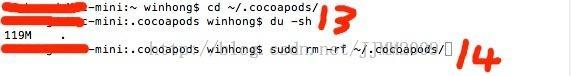 $ cd ~/.cocoapods/ $ sudo -rm -rf ~/.cocoapods/